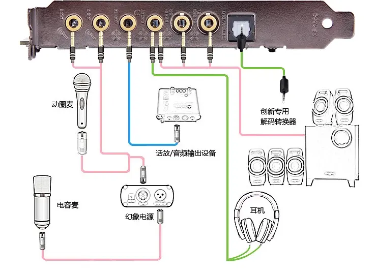 [kX教程] 7.1声卡麦克风耳机音响的连接图 |